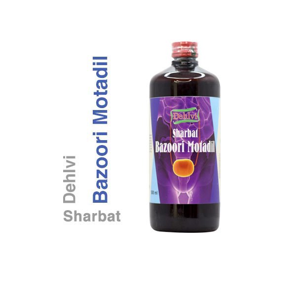 Sharbat Bazoori Motadil removes biliousness of liver, kidney and bladder by inducing excessive urination. Reduces fever caused by hepatic heat.